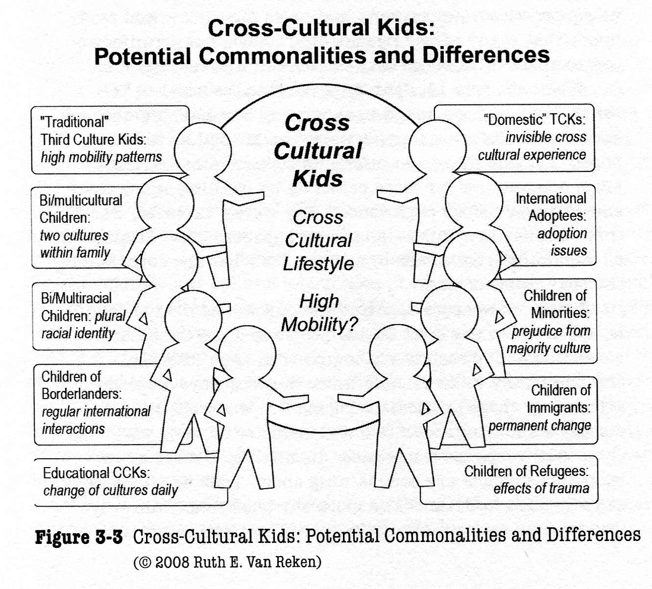 3. „Children of borderlanders: Children who cross borders frequently, even daily, as they go to school, or whose parents work across national borders.“ Although here, van Reken is talking about national borders, this category would be a perfect fit if „national borders“ would be „cultural borders“.